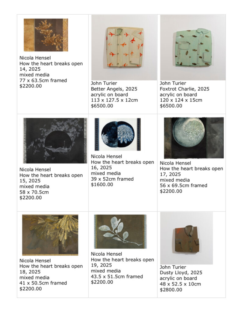A dual-retrospective exhibition of John Turier and partner Nicola Hensel, Kalliope Calliope, was on display at Maitland Regional Art Gallery from 2019-2020.