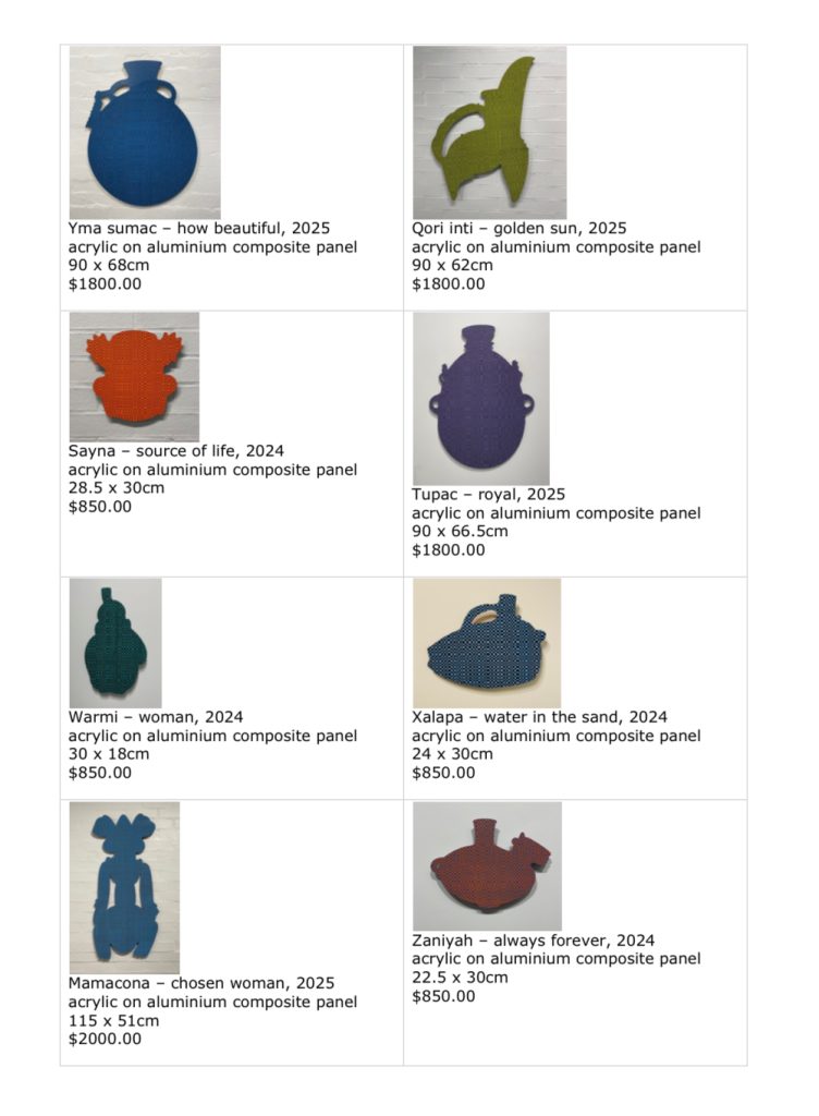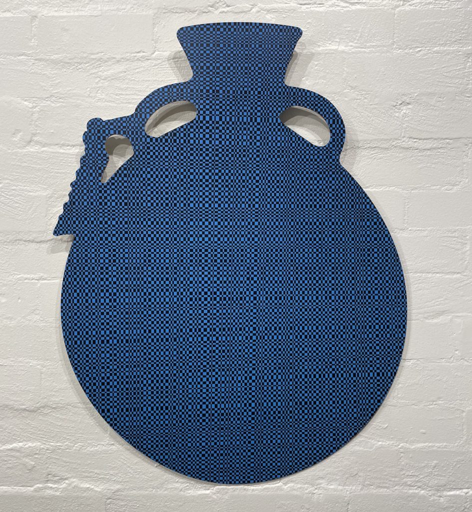 The word Vessel has a multiplicity of meaning but here they are the carriers of message, and pattern. In this exhibition I have made a connection with my days as a studio potter making containers, vases, cups and bowls along with a special interest in ancient South American ceramics. A person can also be regarded as a holder/vessel – someone who receives something spiritual for example.