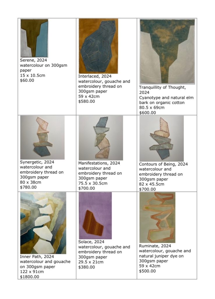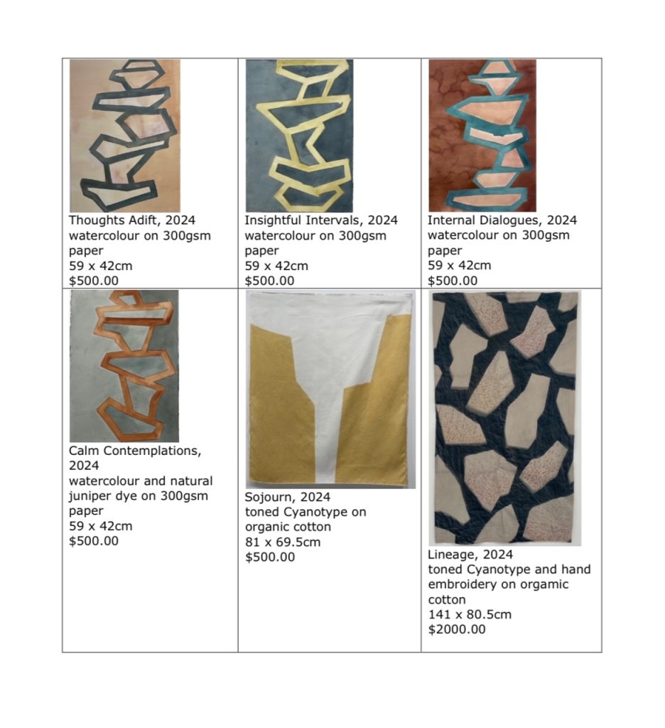 The diverse landscapes Leslie’s encountered have influenced her studio approach. Themes of connection to place, symbiotic relationships with nature, and fascination with natural formations consistently weave through her work. She has attended artist residencies in the USA and continues to exhibit her work both nationally and internationally.