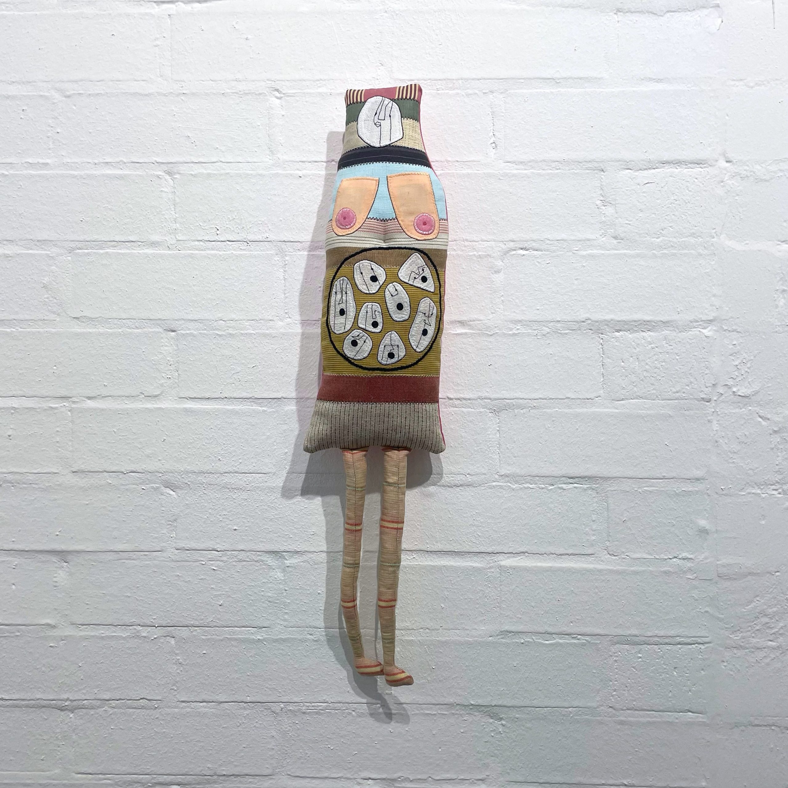 Olivia Parsonage Don’t get born, 2022 recycled fabric wall doll 65cm length